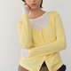 這是一件看似疊穿、實則一體的假兩件針織上衣。以溫和貼膚的天絲羊毛內層搭配彈性針織外層,帶來輕盈卻不單薄的穿著體驗。經典湯勺領線條柔和、貼合頸部輪廓,可自然銜接項鏈或圍巾等配飾。兩種配色風格迥異:黑白簡潔克制,黃白輕快明朗,適配多種日常場景。
