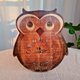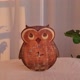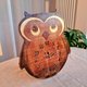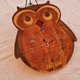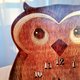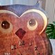 木製貓頭鷹掛鐘帶有數字。掛鐘是在膠合板底座上手繪的。這些棕和金色混合在一起。一切都是用污漬手繪的。我使用木材染色劑來突出木材的結構。每棵樹都有不同的結構和模式。我用金色突出了貓頭鷹的眼睛。