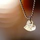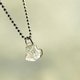 雪や氷のイメージを閉じ込めた可愛らしい小ぶりのハートペンダント。クリアーをベースに、11mmほどの小さな不定形のハートのフォルムとしてお作りしました。内部には銀箔と蓄光素材を使用し、まるで雪が舞っているように繊細なイメージに仕上げました。暗闇でも美しく光を放ちます。