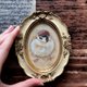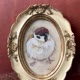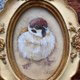 スズメの小さな絵-丸くなるポーズ,額縁付き,原画,アンティーク風