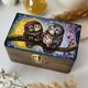 Fairy gift for an animal lover. The cute owls are sleeping so sweetly on a branch under the Moon. Inside the box, there is a tiny painting. The wooden box has a convenient lock not to let things fall out. Suitable for storage of jewelry or some little memorable things.