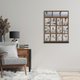 - Picture frame collage styled like a window. This collage is 59 by 75 centimeters and has 15 frames. A wooden cat can be placed on the windowsill and 3 upper frames can be replaced with mirrors. The frame can be painted in different colors.