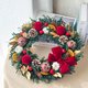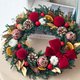 - KEYURA GARDEN-WR08紅絲絨聖誕花圈 /商品規格說明/ 尺寸:花圈直徑約30cm / 含花朵直徑約42-44公分 花材:松果.棉花.橙片.永生雪松.聖誕裝飾物