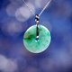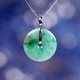 【名稱】冰種飄陽綠翡翠平安扣項鍊 18K金鑲嵌墜頭