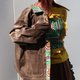 カラフルなナイジェリアのアフリカンファブリックを衿、前立て、ポケットとに施したコーデュロイワークジャケット。