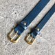 -溫和沈穩的深海藍細版皮帶,可低調、可顯眼,作為洋裝腰間修飾,或是褲裝休閒搭配,都能夠配合。