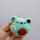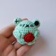 Crochet zombie frog pattern is perfect for beginners. A finished frog you can use as a crochet keychain or car accessories.