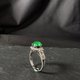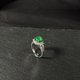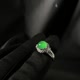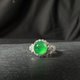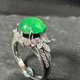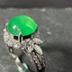 這件作品挑選的是天然冰種的綠色旦面,與18K金、天然鑽石設計而成的戒指,冰種蛋面的寶石光與天然鑽石相互輝映,讓整件作品高貴又不俗氣。