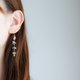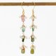 ピンク、淡いグリーン、深いグリーンと色合いの異なるトルマリンを組み合わせ、さらに下部のドロップ型トルマリンはバイカラーのものもあり、耳元で揺れるたびに表情を変えます。