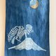 日本製 手染め MOON Mt. Fuji Skull JAPANBLUE Tapestry Aizome 月と富士山と骸骨 藍染タペストリー 三日月怪怪奇奇