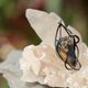 因緣際會開始接觸到金屬創作,從一開始的鋁線擺件、後以銅線纏繞鉍晶體做成墜飾、再因和朋友交流下,接觸蘊含白堊紀(6500萬~1億多年前)動植物的樹液化石:緬甸琥珀(琥珀中年份最久(至少8千萬~1億2千多萬)、種類最多、硬度最高(莫式硬度2.5)、亦開始認識充滿各式色彩與能量的水晶,並開始「鉍元素SBI」的創作之旅。