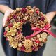 1.以乾燥花及松果、果實花材製作。