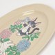 素朴な風合いが可愛い、MADE IN JAPANの美濃焼の使いやすいオーバルの器。どんなお料理にも合わせやすく、丸いお皿より収納しやすいです。パステルカラーを基調とした本体が、清水桐子先生の作品の風合いによく合います。今回の為にリデザイン頂いた「ねことうさぎの花模様」はシンプルで、日常使いもしやすいアイテムです。