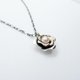 將花型以 925 純銀雕琢成細緻的弧度,中央點綴一顆天然珍珠,彷彿凝結住花心的純淨與光澤。
