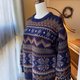 ·厚重深藍雪花古著毛衣