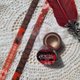 - A reddish, noir-chic pattern masking tape designed with images and colors that evoke the classic atmosphere of a mafia movie