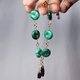 嚴選頂級孔雀石,精工磨製平安扣(古錢),以K金鍊精工編製,型塑串錢在手之招財諭意。