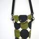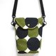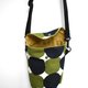 帆布波點圖案斜背包尺寸剛好照顧到生活所需。附有一個小暗隔,方便使用。