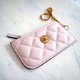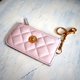 Versace 女士粉紅色絎縫100%小羊皮革卡片包鑰匙圈 奢侈品牌