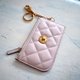 設計: 絎縫的格紋圖案讓人聯想到經典香奈兒風格,搭配迷人的粉紅色,使這款卡片包無法抗拒地甜美而女性化。