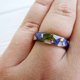 可愛的樹脂堆疊戒指,鑲嵌著真實花朵、苔蘚和金箔,100% 手工製作!採用高品質水晶環保樹脂,再經手工拋光。