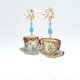 TIMBEE LO 復古茶杯圖案木片耳環 綴施華洛水晶