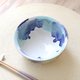 - 這是一款具有深度、呈圓形的碗,表面施以數種藍色和綠色釉藥形成的圖案。經過燒製,釉藥相互交融,描繪出柔和、流動般的色彩。這個尺寸無論作為湯碗或丼飯碗都非常適用。