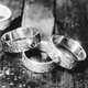 以手工鑿刻呈現層疊櫻花意象,溫柔包覆整圈戒身,