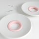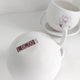 近乎全圓的全瓷杯身隨意的擺放在搭配的瓷盤上,