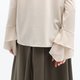 ▪ 裁片下擺運用布料彈性密拷收邊,增加波浪效果。