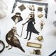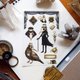 剪取需要範圍,撕下底紙,於透明塑膠保護片上刮擦施壓後,轉印至紙張或平滑表面使用。 尺寸:10X15cm (僅售貼紙,不含拍攝道具與轉印樣品)