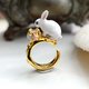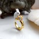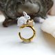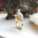 雪白色兔子戒指 鍍9K真黃金 不掉色不氧化 輕珠寶 開口可調整尺寸