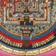 **时轮曼荼罗** 代表时间之轮,体现了宇宙的秩序与精妙和谐。其中心是与时轮本尊合为一体的明妃“遍母”(Vishvamata),象征智慧与慈悲的结合。