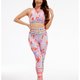 明亮的日落橙色底色,大膽的紫色季風和香蕉葉,白色輪廓,適合3D流行。部落腰帶採用陽光黃色、祖母綠和腮紅粉色三角形的幾何圖案,完美融合了叢林氛圍和民族魅力。穿上它感覺就像一次熱帶雨林之旅,帶有異國情調的文化氣息。