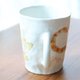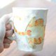 這只貓咪杯以手捏成形,杯身圓潤飽滿,繪上虎紋圖案與靈動表情。寫著「Can Can Please 」,增添使用時的小樂趣。手把設計厚實,握感舒適,可用於盛裝冷熱飲或作為辦公桌的裝飾小物器皿。每件皆為手工繪製,獨一無二。