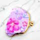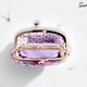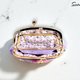 以日本網紗柔紫與粉櫻交織的立體花朵口金包,細緻的珠飾點亮花心,像晨光灑落花瓣,在金色口金的襯托下,閃爍出優雅的氣息。