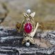 Oval cabochon cut, 1.2 ct, transparent, red color.