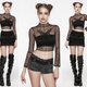 性感透視網T設計,前胸貼有蝴蝶刺繡貼花,前中做拼縫設計,性感獨特