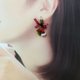 每朵花用繡線鈎出, 染色設計,加上定型膠水做成,每對耳環親手鈎織而成, 在風中垂墜的耳環輕輕的飄著,紅絲帶加了節日的氣氛。