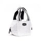 餃子型包包, 能容納大部份日常必備的小物件, 整個包包是用棉絲草鈎織而成, 頂口拉鍊設計, 配上不同顏色織帶,既輕柔而易攜, 適合短暫外出及茶聚使用。