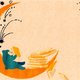 青いクマが三日月に寄りかかって読書をしているデザイン。