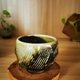 柴燒杯落灰多,胚體呈現流水般的流釉,別有韻味 杯高7公分,上口徑8公分,水量200ml