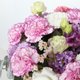 鮮明搶眼的雙色康乃馨與櫻花粉色的繡球花互相交織,