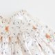 - こちらはぬいぐるみ用のロングワンピースです。きつねが自転車に乗り花咲く野原をサイクリングしている可愛らしい柄が描かれています。