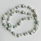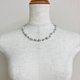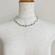 こちらはガラス素材の原玉に、オリジナルパール塗料にて何層にも渡り重ね塗りを施した日本製ガラスパールネックレスになります。パールの間1つ1つに結び目を入れたオールノット加工にて仕上げました。パールサイズは直径約6mm~8mm玉をランダムに使用。長さは標準的なプリンセスサイズの全長約42cmにテールエンドにアジャスターを付けており約5cm程の延長が可能です。パールカラーはきめ細かい質感と優しい艶感が特徴の異なる複数のブルーパールとグレーパール・ホワイトパールをmixして使用しました。