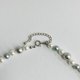 オールノットネックレスの特徴として、万が一、糸が切れた場合でも最小限で抑えられる点や、玉同士が密着していないので擦れあいにくく傷も付きにくい点、首回りにフィットしやすくなっている点等がございます。この仕様は特に海外で人気があり、比較的高品質アクセサリー類によくみられる仕様です。弊社の自社工場にて塗装したパールになります。品質の状態も維持されており、剥がれや大きな目立った傷などもございません。稀にピンホールや小さい凹み等が見られる場合がございますが、自社にて検品の上、品質に問題は無く許容範囲とさせて頂いております。
