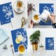 藍地白梅雙蝠耳茶布巾,選自國立故宮博物院最受歡迎系列之一青花瓷器,清康熙時期–藍地白梅雙蝠耳瓶。選取中間白梅圖案作為商品開發的主視覺,經過設計師的細緻描繪,將文物的優雅風格完整呈現。同時,特別在包裝上開出蝠耳瓶身造型的簍空,使產品與文物高度連結。