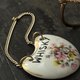 這是一件精緻的瓷製酒牌或稱酒標,主要功能是透過金屬鍊懸掛在玻璃醒酒器(Decanter)的瓶頸上,以便識別瓶內酒精飲品的種類。精緻骨瓷材質 ,浪漫手繪花束與金邊描繪,完美呈現典雅奢華風格。