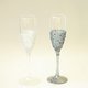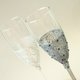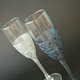 Champagne Glasses Wedding dark navy and Silver Mr and Mrs glasses, Hand-painted set of 2.