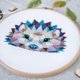 – Sample shown here was made on 18 count white aida and framed in a 9” hoop